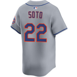 This Juan Soto New York Mets Grey Road Limited Jersey – All Stitched is an essential piece of gear for any New York Mets fan looking to highlight their favorite jersey and player. The Juan Soto New York Mets Grey Road Limited Jersey and team details provide a kickoff-ready look that elevates your excitement for game day. Made with comfort in mind, this New York Mets jersey delivers a standard, lightweight fit and features breathable mesh side panels for added ventilation.