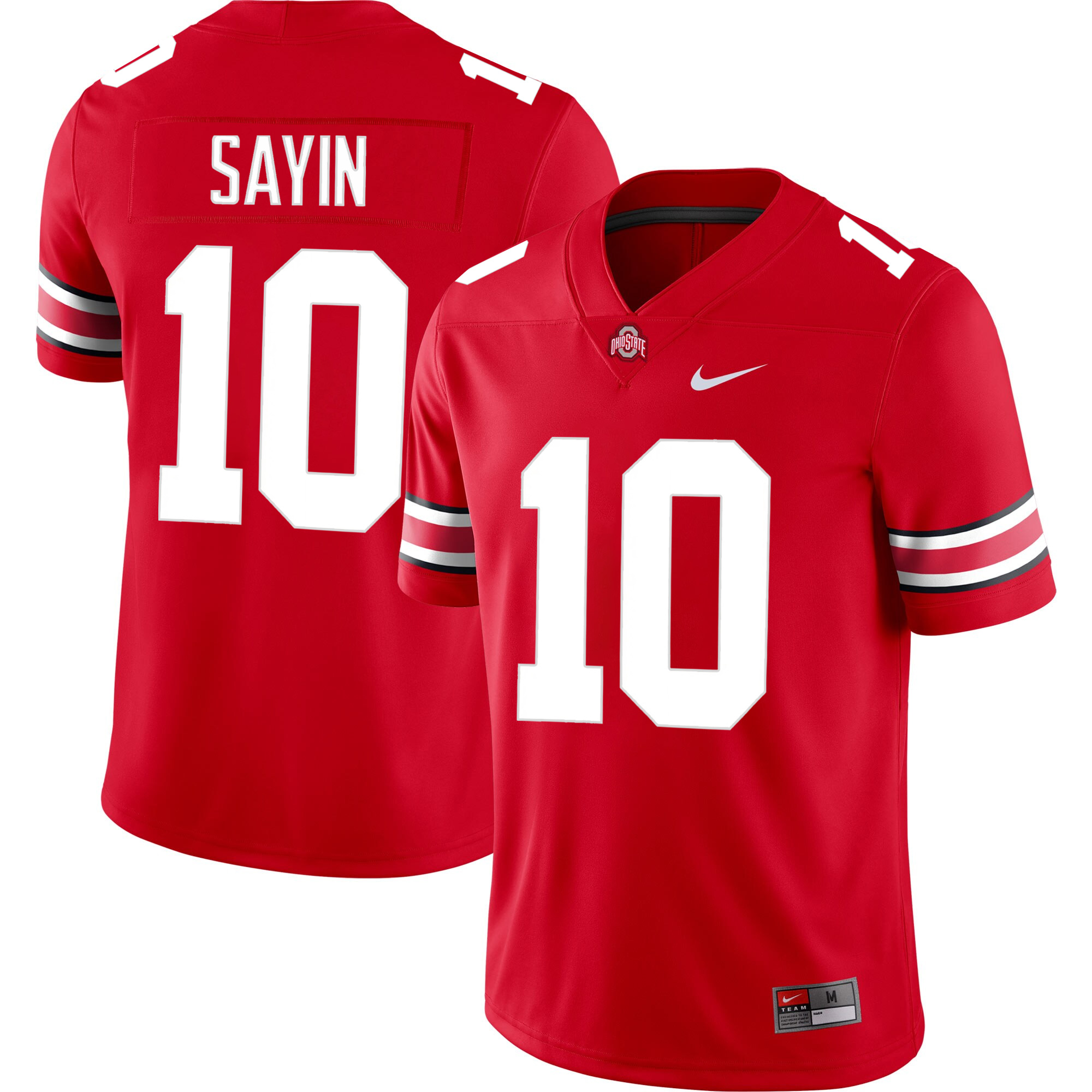 Rep the pride of The Ohio State University with this Buckeyes Scarlet Game Jersey featuring rising star Julian Sayin. Designed for fans who bleed O-H-I-O spirit, this bold scarlet piece showcases fully stitched name, number, and the iconic OSU logos for a durable, textured finish. The classic Buckeyes look highlights the team’s powerhouse reputation across the state and beyond. With its comfortable build and vibrant team colors, this jersey brings Columbus energy to every game day. Whether you’re cheering from the stands or styling it casually, this stitched jersey keeps your Buckeye pride front and center.