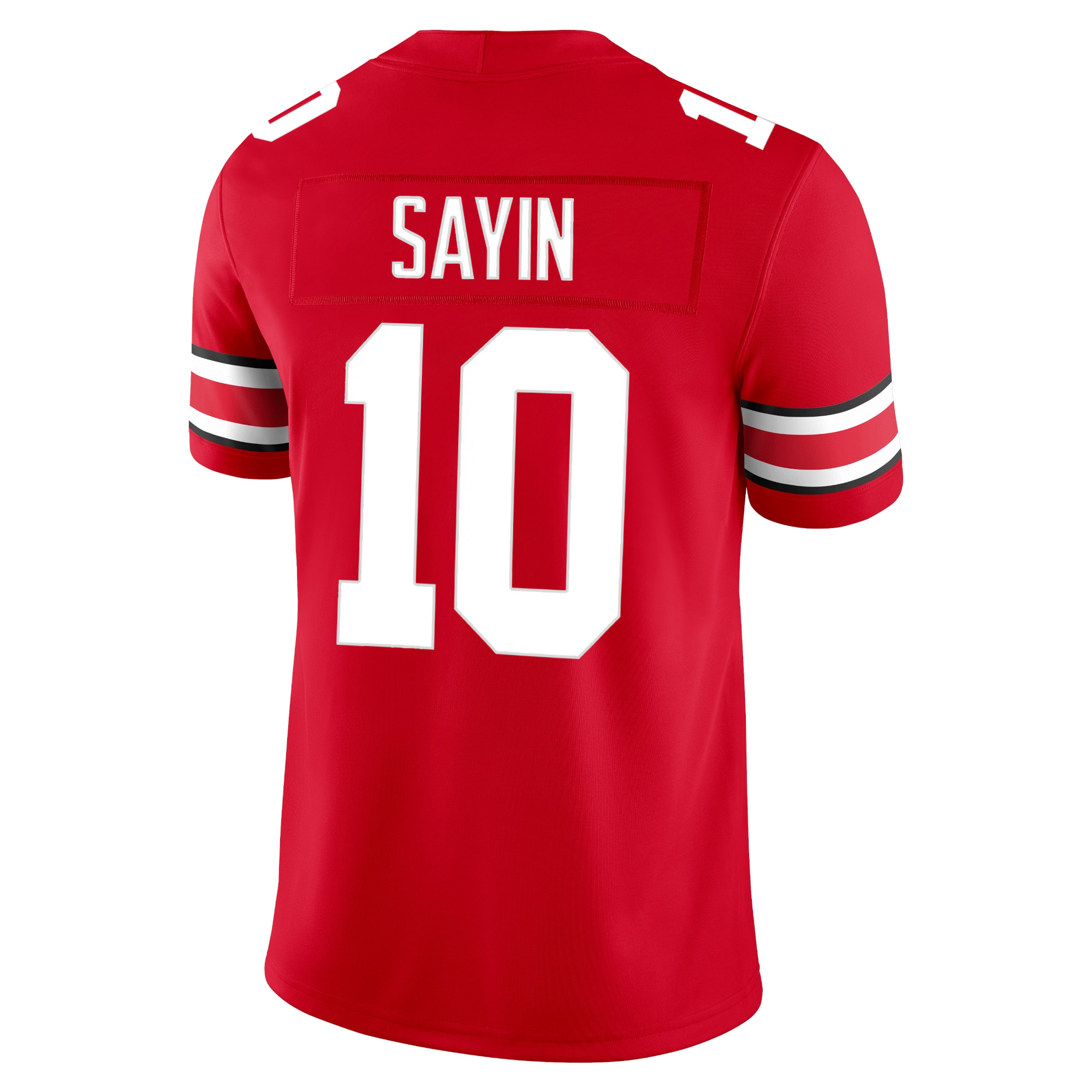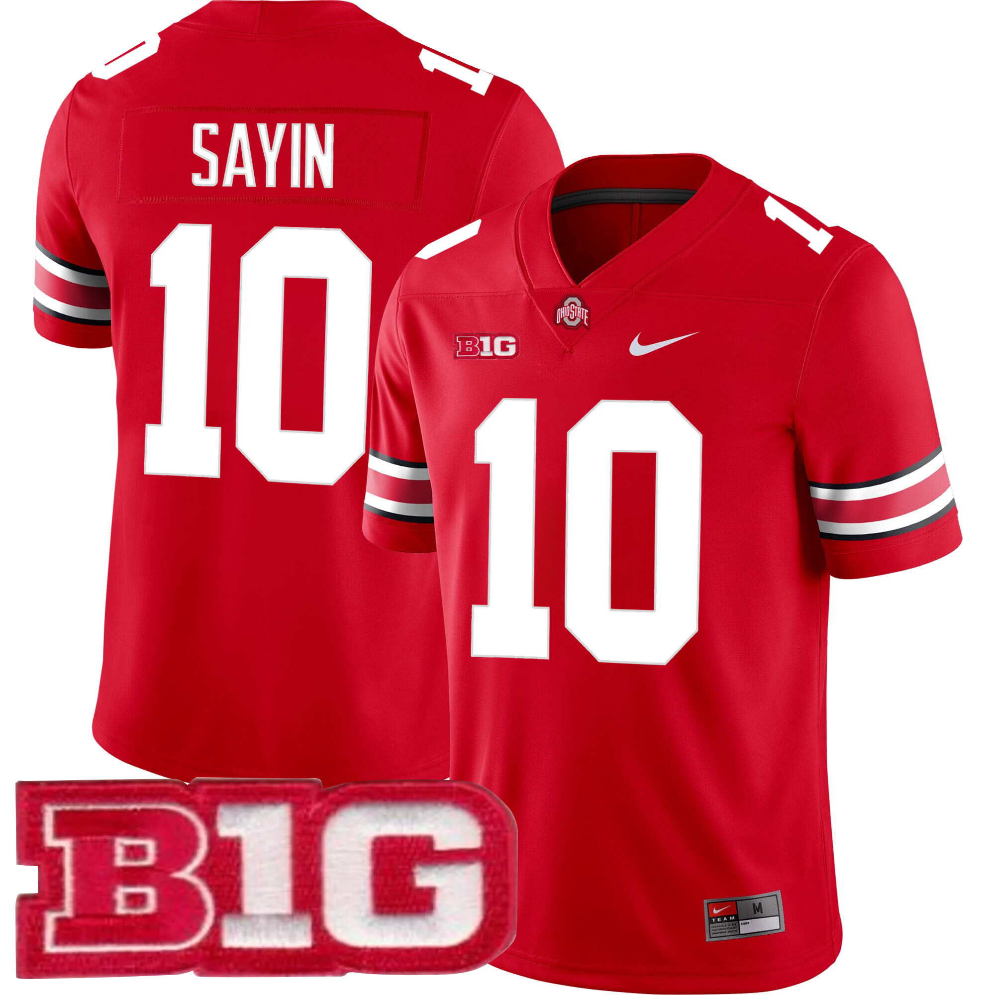 Bring the spirit of The Ohio State University to life with this Scarlet Game Jersey featuring Julian Sayin and a proudly stitched B1G patch. The bold scarlet color celebrates OSU tradition while the fully stitched name, number, and Buckeyes logo deliver long-lasting texture and detail. This jersey reflects the pride of fans across Ohio, capturing the toughness and legacy of the Buckeyes program. Whether cheering in the stands or repping state pride daily, this piece blends comfort with premium stitched craftsmanship, making it a strong tribute to both Julian Sayin’s rising journey and the unmatched OSU football culture.