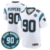 This Julius Peppers Carolina Panthers Black Home Game Jersey w/ HOF Patch – All Stitched is an essential piece of gear for any Carolina Panthers fan looking to highlight their favorite jersey and player. The Julius Peppers Carolina Panthers Black Home Game Jersey w/ HOF Patch and team details provide a kickoff-ready look that elevates your excitement for game day. Made with comfort in mind, this Julius Peppers Carolina Panthers jersey delivers a standard, lightweight fit and features breathable mesh side panels for added ventilation.
