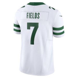 This Justin Fields New York Jets White Road Vapor F.U.S.E Limited Jersey – All Stitched is an essential piece of gear for any New York Jets fan looking to highlight their favorite jersey and player. The Justin Fields New York Jets White Road Vapor F.U.S.E Limited Jersey and team details provide a kickoff-ready look that elevates your excitement for game day. Made with comfort in mind, this Justin Fields New York Jets jersey delivers a standard, lightweight fit and features breathable mesh side panels for added ventilation.