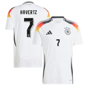 This Kai Havertz Germany national football team Jersey is an essential piece of gear for any Kai Havertz fan looking to highlight their favorite player. The Kai Havertz Germany national football team jersey and team details provide a kickoff-ready look that elevates your excitement for game day. Made with comfort in mind, this Kai Havertz jersey delivers a standard, lightweight fit and features breathable mesh side panels for added ventilation.