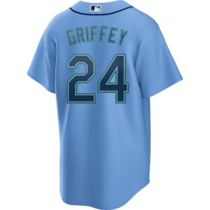 This Ken Griffey Jr Seattle Mariners Light Blue Alternate Jersey – All Stitched is an essential piece of gear for any Seattle Mariners fan looking to highlight their favorite jersey and player. The Ken Griffey Jr Seattle Mariners Light Blue Alternate Jersey and team details provide a kickoff-ready look that elevates your excitement for game day. Made with comfort in mind, this Seattle Mariners jersey delivers a standard, lightweight fit and features breathable mesh side panels for added ventilation.