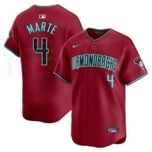 This Ketel Marte Arizona Diamondbacks Red Alternate Limited Jersey – All Stitched is an essential piece of gear for any Arizona Diamondbacks fan looking to highlight their favorite jersey and player. The Ketel Marte Arizona Diamondbacks Red Alternate Limited Jersey and team details provide a kickoff-ready look that elevates your excitement for game day. Made with comfort in mind, this Arizona Diamondbacks jersey delivers a standard, lightweight fit and features breathable mesh side panels for added ventilation.