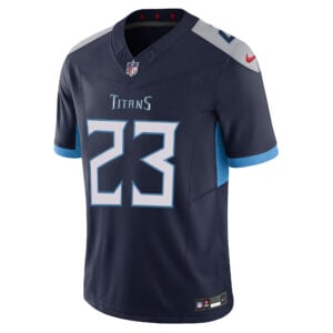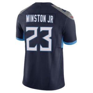 This Kevin Winston Jr Tennessee Titans Navy Alternate Vapor F.U.S.E Limited Jersey – All Stitched is an essential piece of gear for any Tennessee Titans fan looking to highlight their favorite jersey and player. The Kevin Winston Jr Tennessee Titans Navy Alternate Vapor F.U.S.E Limited Jersey and team details provide a kickoff-ready look that elevates your excitement for game day. Made with comfort in mind, this Kevin Winston Jr Tennessee Titans jersey delivers a standard, lightweight fit and features breathable mesh side panels for added ventilation.