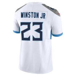 This Kevin Winston Jr Tennessee Titans White Road Vapor F.U.S.E Limited Jersey – All Stitched is an essential piece of gear for any Tennessee Titans fan looking to highlight their favorite jersey and player. The Kevin Winston Jr Tennessee Titans White Road Vapor F.U.S.E Limited Jersey and team details provide a kickoff-ready look that elevates your excitement for game day. Made with comfort in mind, this Kevin Winston Jr Tennessee Titans jersey delivers a standard, lightweight fit and features breathable mesh side panels for added ventilation.