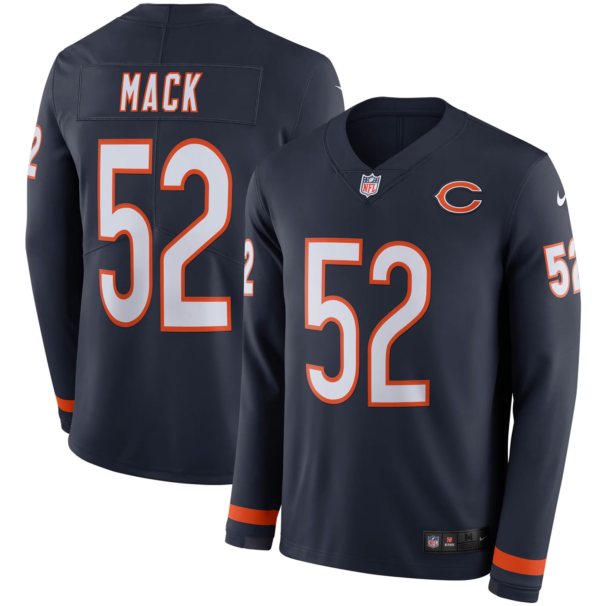 Mack’s name and number are fully stitched, offering a bold and long-lasting finish. The Bears logo and signature patch are embroidered for premium texture and standout detailing. Built with warm Therma long-sleeve construction, this jersey is designed for comfort during those chilly Chicago moments.