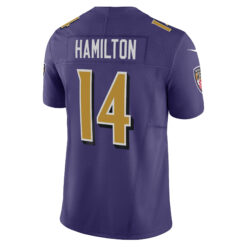 Refresh your fan wardrobe with the Kyle Hamilton Baltimore Ravens Purple Alternate Vapor F.U.S.E Limited Jersey – All Stitched. This alternate take on the Ravens’ classic purple design features fully stitched lettering and numbers for a true pro look, while Vapor F.U.S.E technology delivers enhanced breathability and fit. Ideal for game days or everyday wear, this jersey is a must-have for any Kyle Hamilton supporter.