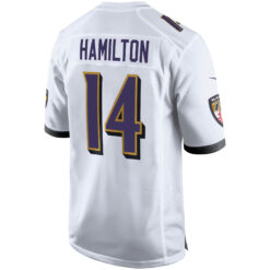 Rep your team on the road with the Kyle Hamilton Baltimore Ravens White Away Game Jersey – All Stitched. Featuring the clean white away design, bold Ravens accents, and fully stitched name and numbers, this jersey delivers both style and performance. Designed for comfort and lasting wear, it’s the perfect choice for showing your support for Kyle Hamilton and the Ravens wherever they play. Wear it to the stadium, at home, or out with friends, and let everyone know your Ravens loyalty runs deep.