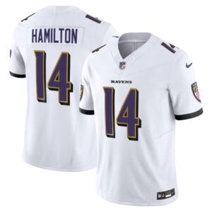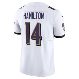 Take your away game look to the next level with the Kyle Hamilton Baltimore Ravens White Away Vapor F.U.S.E Limited Jersey – All Stitched. This advanced jersey combines sleek away colors with Vapor F.U.S.E technology for premium comfort and mobility. Fully stitched graphics ensure long-lasting quality, making it a standout piece for any Ravens supporter. Wear it proudly and show your dedication to Kyle Hamilton and the team.
