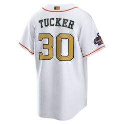 This Kyle Tucker Houston Astros White 2023 Gold Collection Jersey – All Stitched is an essential piece of gear for any Kyle Tucker Houston Astros fan looking to highlight their favorite jersey and player. The Kyle Tucker Houston Astros White 2023 Gold Collection Jersey and team details provide a kickoff-ready look that elevates your excitement for game day. Made with comfort in mind, this Kyle Tucker Houston Astros jersey delivers a standard, lightweight fit and features breathable mesh side panels for added ventilation.