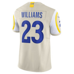 This Kyren Williams Los Angeles Rams Bone Alternate Vapor F.U.S.E Limited Jersey – All Stitched is an essential piece of gear for any Los Angeles Rams fan looking to highlight their favorite jersey and player. The Kyren Williams Los Angeles Rams Bone Alternate Vapor F.U.S.E Limited Jersey and team details provide a kickoff-ready look that elevates your excitement for game day. Made with comfort in mind, this Kyren Williams Los Angeles Rams jersey delivers a standard, lightweight fit and features breathable mesh side panels for added ventilation.