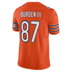 This Luther Burden III Chicago Bears Orange Alternate Vapor F.U.S.E Limited Jersey – All Stitched is an essential piece of gear for any Chicago Bears fan looking to highlight their favorite jersey and player. The Luther Burden III Chicago Bears Orange Alternate Vapor F.U.S.E Limited Jersey and team details provide a kickoff-ready look that elevates your excitement for game day. Made with comfort in mind, this Luther Burden III Chicago Bears jersey delivers a standard, lightweight fit and features breathable mesh side panels for added ventilation.