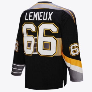 The Mario Lemieux Pittsburgh Penguins Black 1996/97 Power Play Jersey – All Stitched brings back the mid-’90s Penguins flair with bold contrast and detail. Featuring stitched logos, embroidered Lemieux name and number, and retro gold accents, this jersey connects fans to one of the franchise’s most electrifying eras. It’s a strong symbol of Pittsburgh’s hockey pride and Lemieux’s lasting influence.