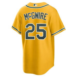 This Mark McGwire Oakland Athletics Gold Alternate Jersey – All Stitched is an essential piece of gear for any Oakland Athletics fan looking to highlight their favorite jersey and player. The Mark McGwire Oakland Athletics Gold Alternate Jersey and team details provide a kickoff-ready look that elevates your excitement for game day. Made with comfort in mind, this Oakland Athletics jersey delivers a standard, lightweight fit and features breathable mesh side panels for added ventilation.