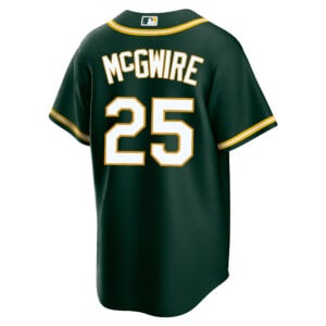 This Mark McGwire Oakland Athletics Green Alternate Jersey – All Stitched is an essential piece of gear for any Oakland Athletics fan looking to highlight their favorite jersey and player. The Mark McGwire Oakland Athletics Green Alternate Jersey and team details provide a kickoff-ready look that elevates your excitement for game day. Made with comfort in mind, this Oakland Athletics jersey delivers a standard, lightweight fit and features breathable mesh side panels for added ventilation.