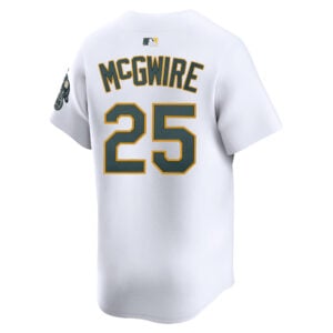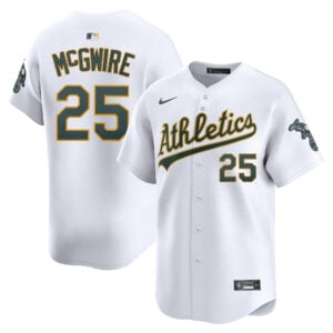 This Mark McGwire Oakland Athletics White Home Limited Jersey – All Stitched is an essential piece of gear for any Oakland Athletics fan looking to highlight their favorite jersey and player. The Mark McGwire Oakland Athletics White Home Limited Jersey and team details provide a kickoff-ready look that elevates your excitement for game day. Made with comfort in mind, this Oakland Athletics jersey delivers a standard, lightweight fit and features breathable mesh side panels for added ventilation.