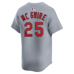This Mark McGwire St. Louis Cardinals Grey Road Limited Jersey – All Stitched is an essential piece of gear for any St. Louis Cardinals fan looking to highlight their favorite jersey and player. The Mark McGwire St. Louis Cardinals Grey Road Limited Jersey and team details provide a kickoff-ready look that elevates your excitement for game day. Made with comfort in mind, this St. Louis Cardinals jersey delivers a standard, lightweight fit and features breathable mesh side panels for added ventilation.