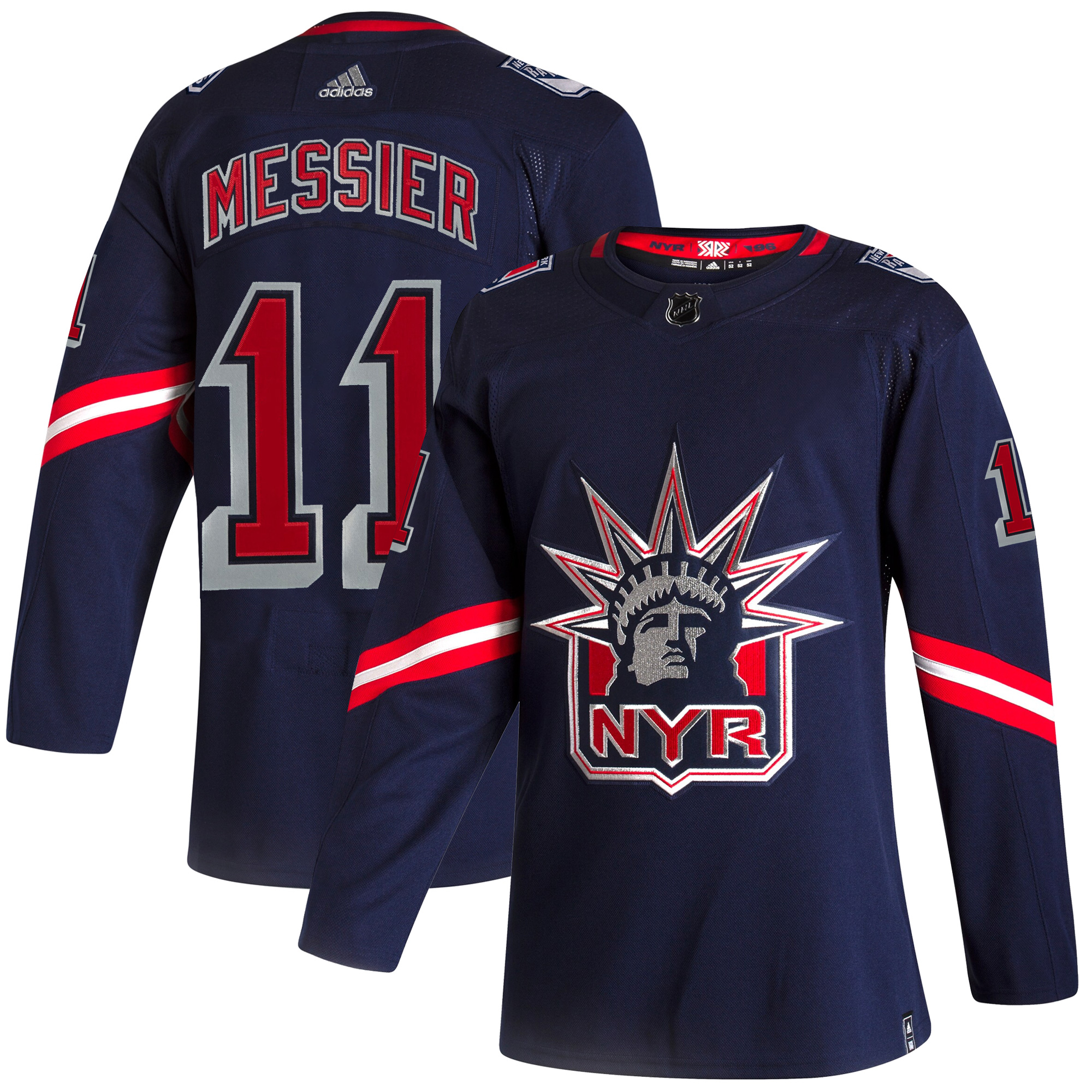 Step into Rangers history with the Mark Messier Navy Reverse Retro Primegreen Jersey. Made with Primegreen recycled materials, this jersey fuses sustainability with nostalgia. The stitched name and number and embroidered logos honor New York state pride and the iconic NYR aesthetic. A perfect piece for fans who value both retro style and modern craftsmanship.