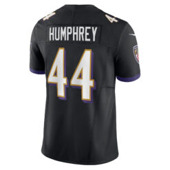 The Marlon Humphrey Baltimore Ravens Black Alternate Vapor F.U.S.E Limited Jersey – All Stitched offers a sleek, modern look that mirrors the on-field style of your favorite players. Its advanced Vapor F.U.S.E construction ensures a streamlined fit and maximum comfort, while the all-stitched graphics showcase Humphrey’s name and number with lasting quality. Ideal for prime-time games or stylish fan wear, this jersey blends cutting-edge performance with bold Baltimore pride.