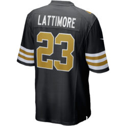 This Marshon Lattimore New Orleans Saints Black Alternate Game Jersey – All Stitched is an essential piece of gear for any New Orleans Saints fan looking to highlight their favorite jersey and player. The Marshon Lattimore New Orleans Saints Black Alternate Game Jersey and team details provide a kickoff-ready look that elevates your excitement for game day. Made with comfort in mind, this Marshon Lattimore New Orleans Saints jersey delivers a standard, lightweight fit and features breathable mesh side panels for added ventilation.