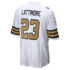 This Marshon Lattimore New Orleans Saints White Alternate Game Jersey – All Stitched is an essential piece of gear for any New Orleans Saints fan looking to highlight their favorite jersey and player. The Marshon Lattimore New Orleans Saints White Alternate Game Jersey and team details provide a kickoff-ready look that elevates your excitement for game day. Made with comfort in mind, this Marshon Lattimore New Orleans Saints jersey delivers a standard, lightweight fit and features breathable mesh side panels for added ventilation.