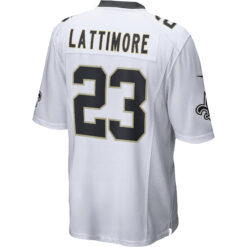 This Marshon Lattimore New Orleans Saints White Road Game Jersey – All Stitched is an essential piece of gear for any New Orleans Saints fan looking to highlight their favorite jersey and player. The Marshon Lattimore New Orleans Saints White Road Game Jersey and team details provide a kickoff-ready look that elevates your excitement for game day. Made with comfort in mind, this Marshon Lattimore New Orleans Saints jersey delivers a standard, lightweight fit and features breathable mesh side panels for added ventilation.