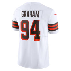 This Mason Graham Cleveland Browns White 1946 Throwback Vapor F.U.S.E Limited Jersey – All Stitched is an essential piece of gear for any Cleveland Browns fan looking to highlight their favorite jersey and player. The Mason Graham Cleveland Browns White 1946 Throwback Vapor F.U.S.E Limited Jersey and team details provide a kickoff-ready look that elevates your excitement for game day. Made with comfort in mind, this Mason Graham Cleveland Browns jersey delivers a standard, lightweight fit and features breathable mesh side panels for added ventilation.