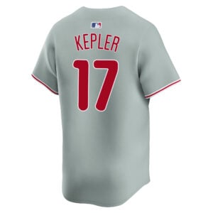 This Max Kepler Philadelphia Phillies Grey Road Limited Jersey – All Stitched is an essential piece of gear for any Philadelphia Phillies fan looking to highlight their favorite jersey and player. The Max Kepler Philadelphia Phillies Grey Road Limited Jersey and team details provide a kickoff-ready look that elevates your excitement for game day. Made with comfort in mind, this Philadelphia Phillies jersey delivers a standard, lightweight fit and features breathable mesh side panels for added ventilation.