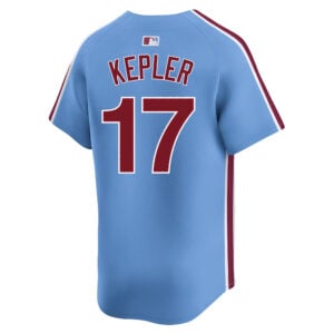 This Max Kepler Philadelphia Phillies Light Blue Alternate Limited Jersey – All Stitched is an essential piece of gear for any Philadelphia Phillies fan looking to highlight their favorite jersey and player. The Max Kepler Philadelphia Phillies Light Blue Alternate Limited Jersey and team details provide a kickoff-ready look that elevates your excitement for game day. Made with comfort in mind, this Philadelphia Phillies jersey delivers a standard, lightweight fit and features breathable mesh side panels for added ventilation.