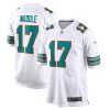 Men's #17 Jaylen Waddle Miami Dolphins White Throwback Game Jersey - All Stitched