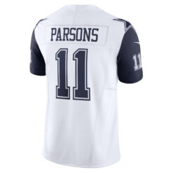 This Micah Parsons Dallas Cowboys White Alternate Vapor F.U.S.E Limited Jersey – All Stitched is an essential piece of gear for any Dallas Cowboys fan looking to highlight their favorite jersey and player. The Micah Parsons Dallas Cowboys White Alternate Vapor F.U.S.E Limited Jersey and team details provide a kickoff-ready look that elevates your excitement for game day. Made with comfort in mind, this Personalized Dallas Cowboys jersey delivers a standard, lightweight fit and features breathable mesh side panels for added ventilation.