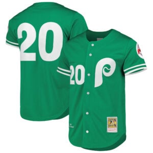 This Mike Schmidt Philadelphia Phillies Green Cooperstown Limited Jersey – All Stitched is an essential piece of gear for any Philadelphia Phillies fan looking to highlight their favorite jersey and player. The Mike Schmidt Philadelphia Phillies Green Cooperstown Limited Jersey and team details provide a kickoff-ready look that elevates your excitement for game day. Made with comfort in mind, this Philadelphia Phillies jersey delivers a standard, lightweight fit and features breathable mesh side panels for added ventilation.