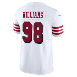 This Mykel Williams San Francisco 49ers White Alternate Vapor F.U.S.E Limited Jersey – All Stitched is an essential piece of gear for any San Francisco 49ers fan looking to highlight their favorite jersey and player. The Mykel Williams San Francisco 49ers White Alternate Vapor F.U.S.E Limited Jersey and team details provide a kickoff-ready look that elevates your excitement for game day. Made with comfort in mind, this Mykel Williams San Francisco 49ers jersey delivers a standard, lightweight fit and features breathable mesh side panels for added ventilation.