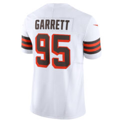Honor tradition with a modern edge in the Myles Garrett Cleveland Browns White 1946 Throwback Vapor F.U.S.E Limited Jersey – All Stitched. Blending retro Cleveland Browns style with stitched player details and embroidered logos, it’s a proud tribute to Ohio football history and Garrett’s legacy.