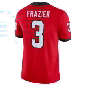 Celebrate Georgia tradition with this Nate Frazier Bulldogs Red Home Jersey featuring a stitched SEC patch. Representing the University of Georgia and the powerful pride of Dawgs fans across the state, this jersey highlights classic red styling with premium stitched elements—including the stitched name, stitched numbers, stitched Georgia logo, and stitched conference patch.