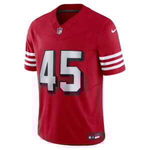 This Nick Martin San Francisco 49ers Scarlet Alternate Vapor F.U.S.E Limited Jersey – All Stitched is an essential piece of gear for any San Francisco 49ers fan looking to highlight their favorite jersey and player. The Nick Martin San Francisco 49ers Scarlet Alternate Vapor F.U.S.E Limited Jersey and team details provide a kickoff-ready look that elevates your excitement for game day. Made with comfort in mind, this Nick Martin San Francisco 49ers jersey delivers a standard, lightweight fit and features breathable mesh side panels for added ventilation.