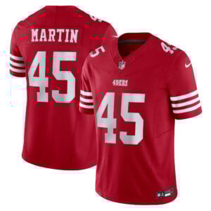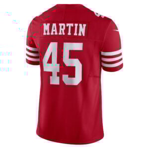 This Nick Martin San Francisco 49ers Scarlet Home Vapor F.U.S.E Limited Jersey – All Stitched is an essential piece of gear for any San Francisco 49ers fan looking to highlight their favorite jersey and player. The Nick Martin San Francisco 49ers Scarlet Home Vapor F.U.S.E Limited Jersey and team details provide a kickoff-ready look that elevates your excitement for game day. Made with comfort in mind, this Nick Martin San Francisco 49ers jersey delivers a standard, lightweight fit and features breathable mesh side panels for added ventilation.