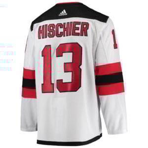 Keep it classic on the road with the Nico Hischier New Jersey Devils White Away Primegreen Jersey. Highlighted by stitched logos, numbers, name, and patches, this jersey blends sustainable construction with New Jersey hockey tradition for fans supporting the Devils away from home.