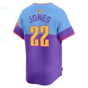 This Nolan Jones Colorado Rockies Purple Light Blue 2025 City Connect Limited Jersey – All Stitched is an essential piece of gear for any Colorado Rockies fan looking to highlight their favorite jersey and player. The Nolan Jones Colorado Rockies Purple Light Blue 2025 City Connect Limited Jersey and team details provide a kickoff-ready look that elevates your excitement for game day. Made with comfort in mind, this Colorado Rockies jersey delivers a standard, lightweight fit and features breathable mesh side panels for added ventilation.