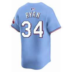 This Nolan Ryan Texas Rangers Light Blue Alternate Limited Jersey – All Stitched is an essential piece of gear for any Texas Rangers fan looking to highlight their favorite jersey and player. The Nolan Ryan Texas Rangers Light Blue Alternate Limited Jersey and team details provide a kickoff-ready look that elevates your excitement for game day. Made with comfort in mind, this Texas Rangers jersey delivers a standard, lightweight fit and features breathable mesh side panels for added ventilation.