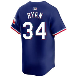 This Nolan Ryan Texas Rangers Royal Blue Alternate Limited Jersey – All Stitched is an essential piece of gear for any Texas Rangers fan looking to highlight their favorite jersey and player. The Nolan Ryan Texas Rangers Royal Blue Alternate Limited Jersey and team details provide a kickoff-ready look that elevates your excitement for game day. Made with comfort in mind, this Texas Rangers jersey delivers a standard, lightweight fit and features breathable mesh side panels for added ventilation.