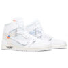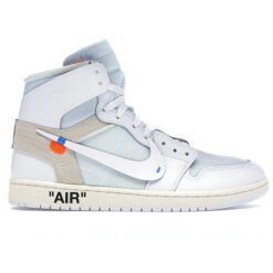 Inspired by Air Jordan 1 colorways, the Off-White x Air Jordan 1 Retro High OG ‘White’ 2018 is a reimagination of its ‘Chicago’-themed predecessor. Designed by Virgil Abloh, the model features an all-white premium leather and mesh upper with deconstructed Swoosh branding and blue detailing, and Wings logos on the ankles. It is accented by black “AIR” lettering on the midsole, black ‘Off-White™ for NIKE’ text on the side panels, and orange tabs.