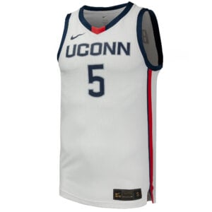 This Paige Bueckers UConn Huskies Women’s Basketball White Jersey – All Stitched is an essential piece of gear for any UConn Huskies basketball fan looking to highlight their favorite jersey and player. The Paige Bueckers UConn Huskies Women’s Basketball White Jersey and team details provide a kickoff-ready look that elevates your excitement for game day. Made with comfort in mind, this Paige Bueckers UConn Huskies basketball jersey delivers a standard, lightweight fit and features breathable mesh side panels for added ventilation.