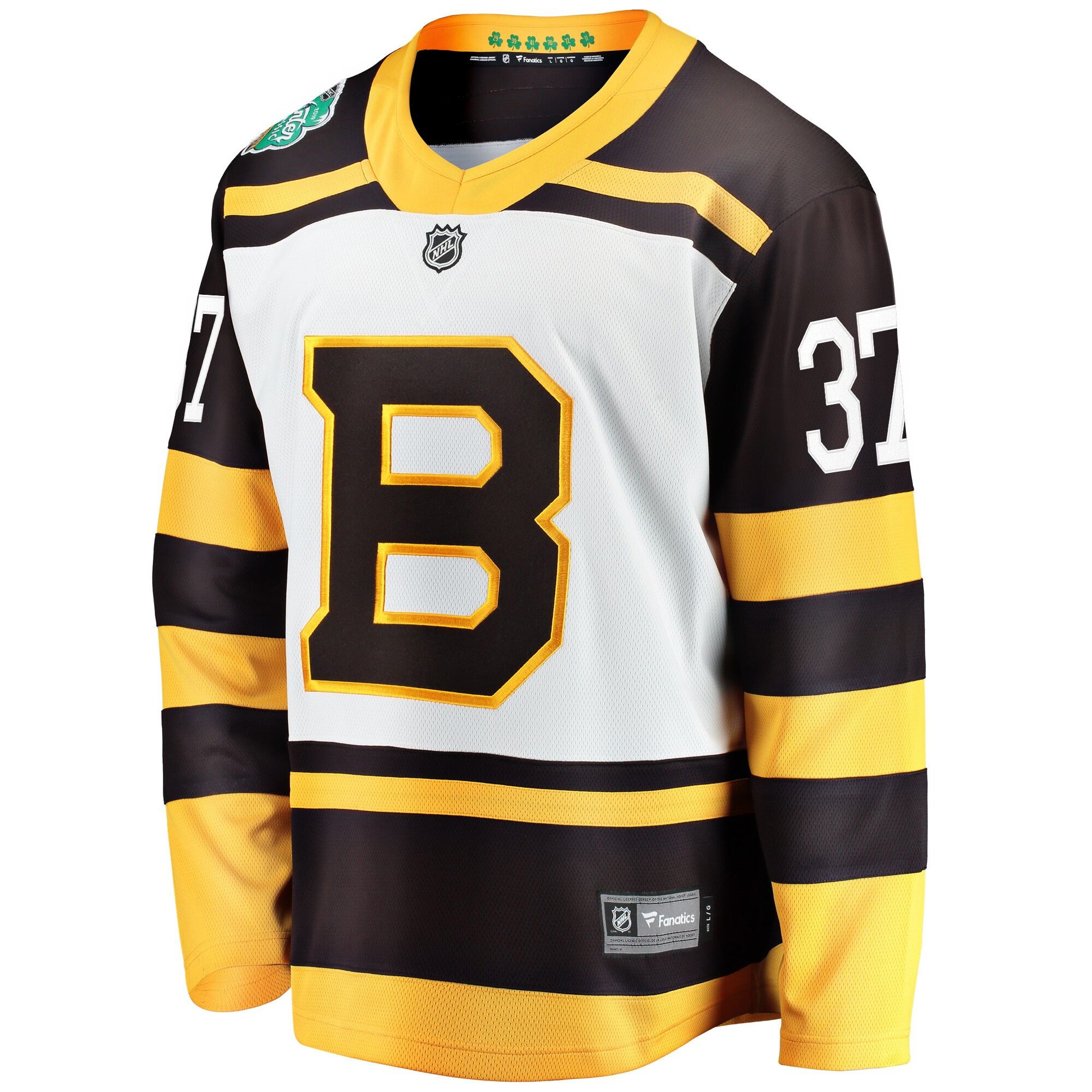 Celebrate one of the most memorable outdoor matchups with the Boston Bruins White 2019 Winter Classic Jersey. Worn during the iconic event, this jersey features stitched name, number, embroidered logo, and commemorative patch that highlight every detail of Patrice Bergeron’s leadership and the Bruins’ pride. The white and brown heritage-inspired colorway reflects the deep hockey roots of Massachusetts, making this a timeless collectible for true fans of Boston hockey.