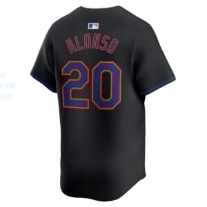 This Pete Alonso New York Mets Black Alternate Limited Jersey – All Stitched is an essential piece of gear for any New York Mets fan looking to highlight their favorite jersey and player. The Pete Alonso New York Mets Black Alternate Limited Jersey and team details provide a kickoff-ready look that elevates your excitement for game day. Made with comfort in mind, this New York Mets jersey delivers a standard, lightweight fit and features breathable mesh side panels for added ventilation.