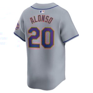 This Pete Alonso New York Mets Grey Road Limited Jersey – All Stitched is an essential piece of gear for any New York Mets fan looking to highlight their favorite jersey and player. The Pete Alonso New York Mets Grey Road Limited Jersey and team details provide a kickoff-ready look that elevates your excitement for game day. Made with comfort in mind, this New York Mets jersey delivers a standard, lightweight fit and features breathable mesh side panels for added ventilation.