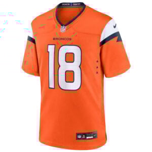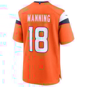 Celebrate the Mile High spirit with this Denver Broncos Orange Home Game Jersey for Peyton Manning. Representing the University of Tennessee legend turned Colorado icon, this jersey reflects the pride of Denver, CO with bold Broncos colors. The stitched name, embroidered number, carefully crafted logo, and detailed team patch showcase the Denver Broncos (DEN) tradition with premium finish, making it the ultimate way to show team pride on game day.