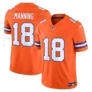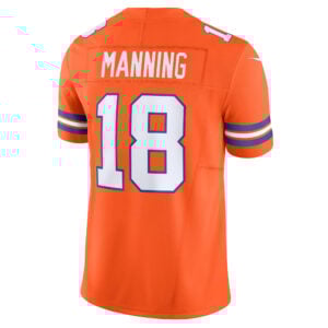 Celebrate Broncos tradition with the Peyton Manning Mile High Collection Throwback Vapor F.U.S.E Limited Jersey. A bright orange piece of Denver pride, this jersey features stitched name, embroidered number, retro patch, and embroidered logos, honoring both Colorado state pride and the unforgettable Broncos (DEN) football heritage.