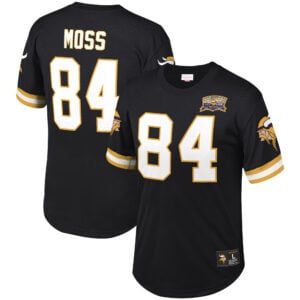 The Randy Moss Minnesota Vikings Black 2000 Throwback Jersey – All Stitched brings a rare and bold take on Minnesota history. With Moss’s stitched number, embroidered logos, and throwback-inspired detailing, this jersey celebrates state pride while keeping Moss’s highlight years alive in style.